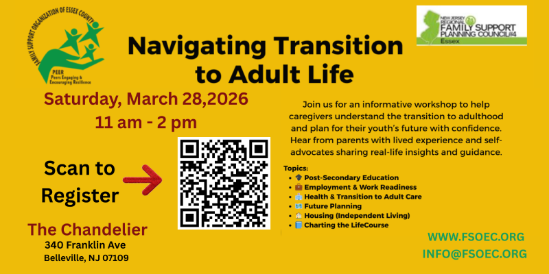 Family Support Organization of Essex County is a family-centered, family-driven nonprofit organization that provides peer support, education and advocacy for parents of children who have emotional, behavioral, mental health, substance use, intellectual and developmental challenges.